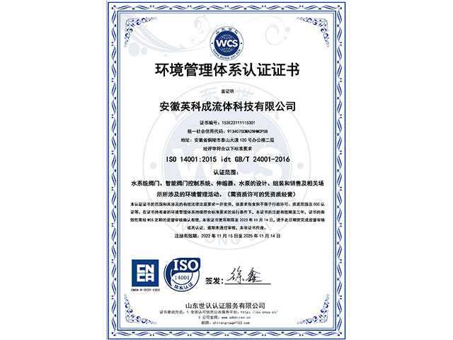 安徽英科成流體科技有限公司位于黃山腳下長江之濱的中國古銅都-安徽省銅陵市。公司注冊資金1.1億,是國內(nèi)一家專業(yè)致力于給排水行業(yè)系統(tǒng)解決方案、閥門以及智能閥門技術(shù)研發(fā)與生產(chǎn)銷售服務(wù)為一體的企業(yè)。 我們擁有完善的質(zhì)量控制體系和檢測設(shè)備,公司主要的產(chǎn)品有閘閥、蝶閥、偏心半球閥、液控蝶式止回閥、靜音止回閥、橡膠瓣止回閥、活塞式流量調(diào)節(jié)、錐型閥、節(jié)能型泵控閥、倒流防止器、減壓閥、排氣閥、排泥閥、伸縮器、閘門、啟閉機(jī)等二十多個系列,可以充分滿足客戶的一站式需求。……